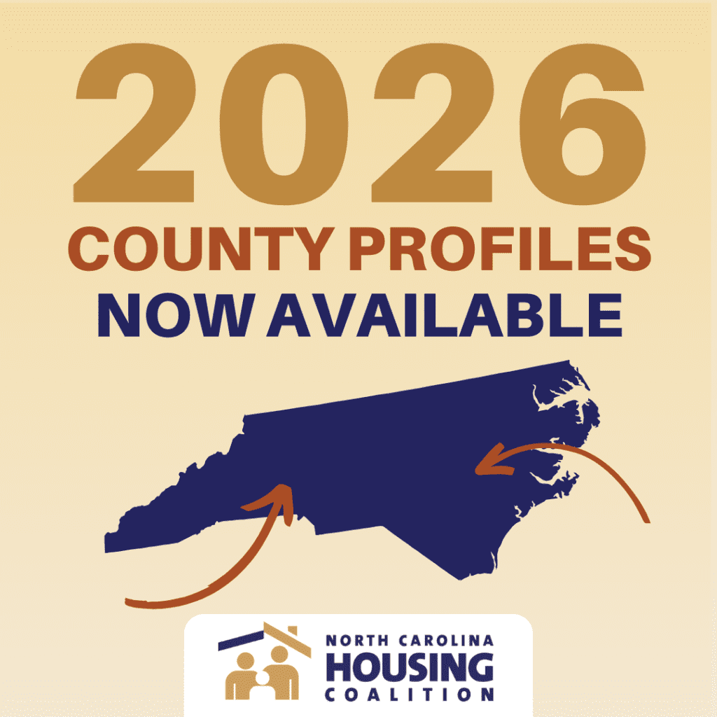 We are excited to announce the release of our 2026 County Profiles for North Carolina and all 100 counties across the state. At the NC Housing Coalition, we believe that every North Carolinian deserves a home in which to live with dignity and opportunity. One of the ways we pursue this is through reliable research that allows us to develop user-friendly tools for others to join us in pushing this mission forward.