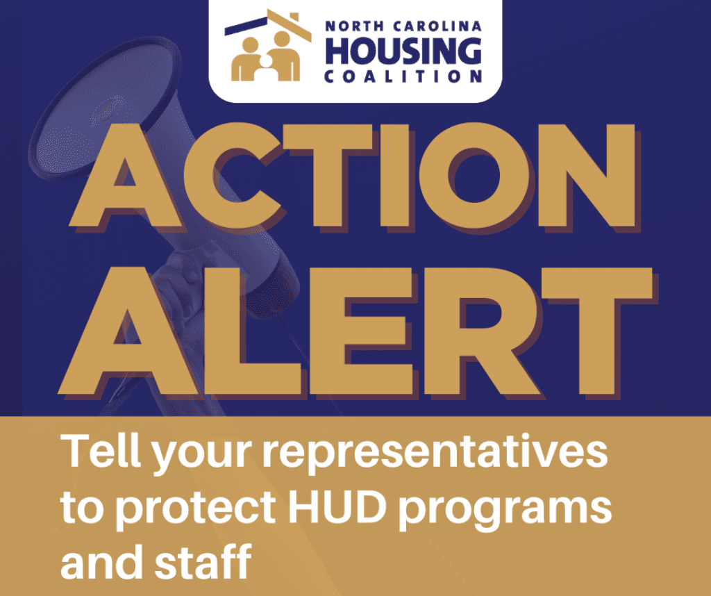 North Carolina communities cannot afford to lose HUD funding for critical housing, community, and homelessness programs. Reduction in staff means reduction in capacity and increased barriers to congressionally approved federal investments that are needed to address our most pressing housing challenges. Take action today!