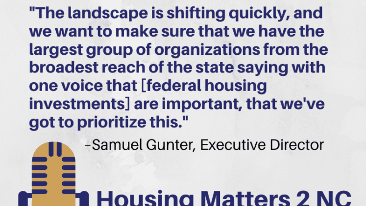 Tell NC’s Congressional delegation to protect Federal housing investments in North Carolina. Add your organization to our letter to Congress today.
