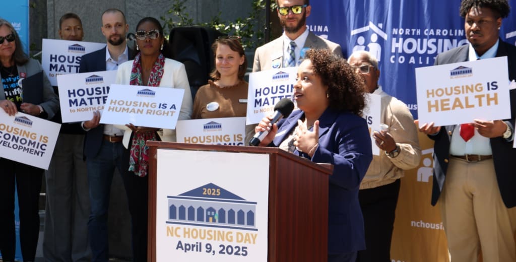 “We’re here talking to [NC state legislators] about funding housing and how these investments have to meet the scale of the need, because they currently do not,” said Stephanie Watkins-Cruz, Director of Housing Policy at the NC Housing Coalition. “We’re here talking to them about equitable disaster recovery, talking to them about removing barriers when it comes to land use and development. We’re making sure that they know that they have the power in order to protect homeowners and renters.”